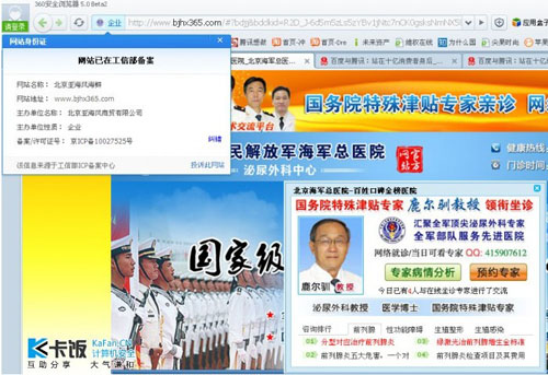 360安全瀏覽器的網(wǎng)站名片功能也是利用工信部ICP/IP地址/域名信息備案管理系統(tǒng)的。
