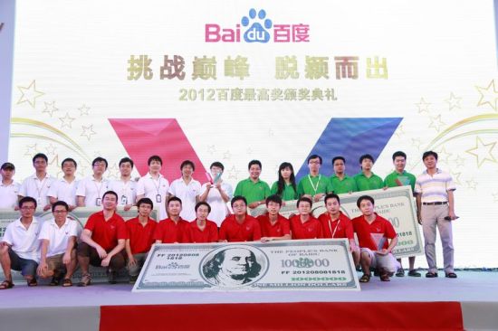 今日傍晚,百度北京總部舉行的Summer Party(夏日派對)期間,第二屆百度最高獎正式公布獲獎名單:服務器潛能激發技術、網盟關鍵詞精準匹配技術、鳳巢個性化投放策略等三個項目團隊最終一同獲得百度最高獎,分別拿到100萬美元獎金。