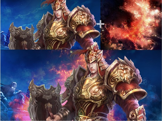 光效的顏色、形狀和出現的位置會對設計表達的氣氛產生很直接的影響,就好像現實中的光源一樣,淺色暖色調的光效給人光明溫暖的感覺,深色冷色調的就給人陰暗冷酷的感覺,同樣的素材加上不同的光效,展現的也許就是完全不同的立場。具體到游戲頁面設計,不同的勢力性格不同,通常都有各自的代表顏色,這時候用對應的光效來表現,很容易就能烘托出這些勢力不同的個性來,是非常基本的運用。